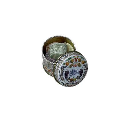 Boites rondes métalliques de rigolettes aux parfums traditionnelles (citron, framboise, cassis, ananas, mandarine )