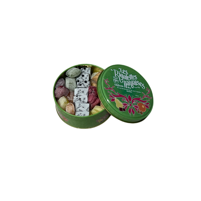 La boite "la Nantaise" est un mélange de rigolettes aux parfums traditionnels, de berlingots et de caramel au sel de Guérande.