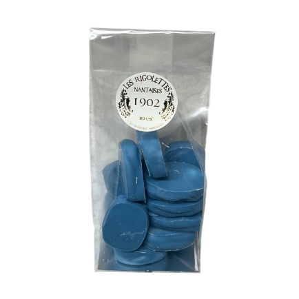 Feuilleté praliné caramélisé et recouvert de chocolat bleu par Guisabel.